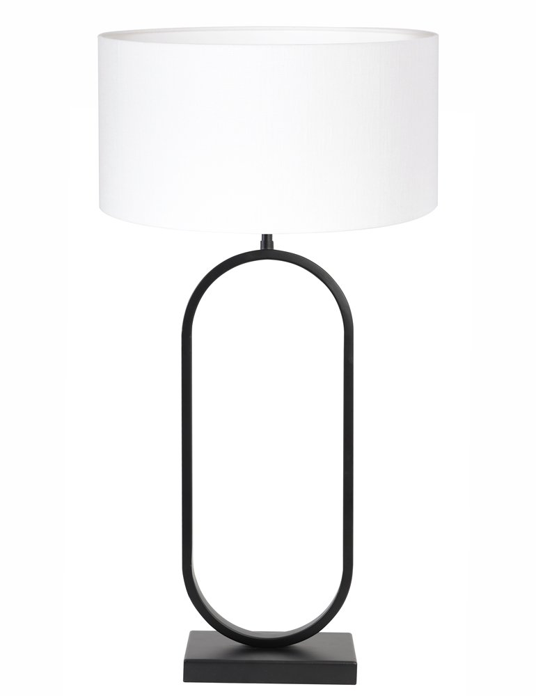 Trendy ovale Tischleuchte weißer Lampenschirm Light & Living Jamiri schwarz