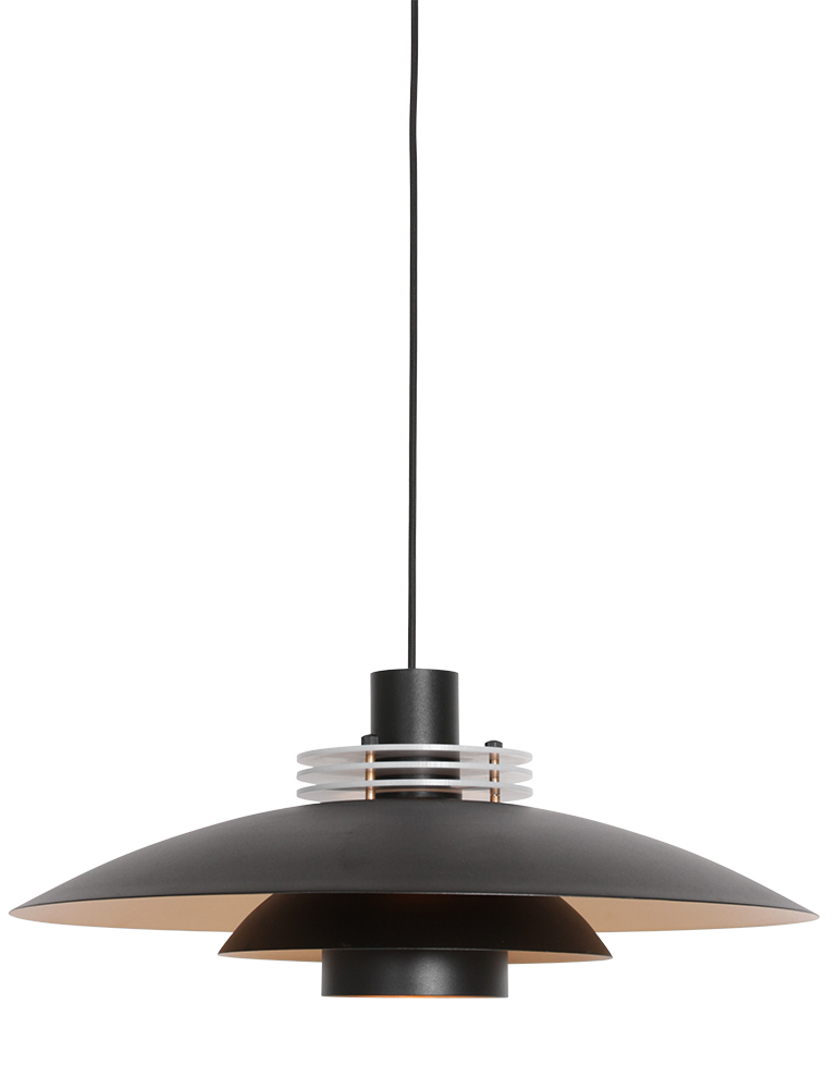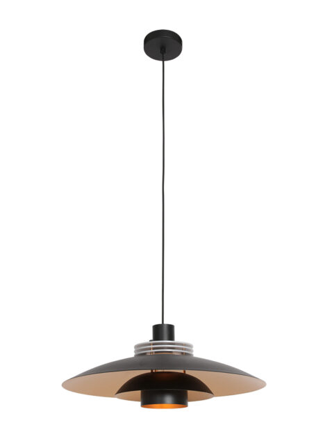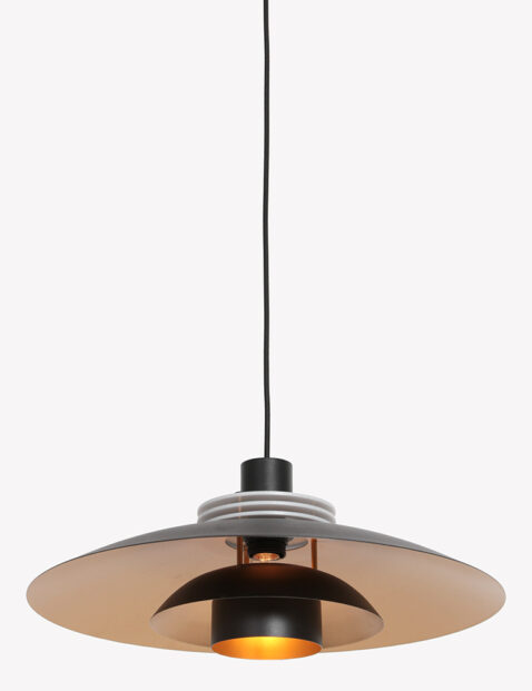 Die trendige Hängeleuchte besteht aus einer schwarzen Schale. Das elegante Design wird durch das goldene Innere betont. Hängen Sie die Lampe nah an der Decke, in einem Abstand von zwanzig Zentimetern, oder wählen Sie eine Kabellänge von anderthalb Metern. Wo auch immer Sie die Lampe aufhängen, über dem Esstisch oder über dem Couchtisch, sorgt diese Hängeleuchte für die richtige Beleuchtung.
