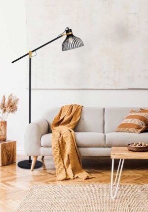 Die Drahtstehleuchte von Anne Light & Home ist ein Design-Highlight. Viele goldene Details vereint die Leuchte, die individuell verstellbar ist. Das Design-Thema der Farben Schwarz und Gold nimmt dieses Design komplett in sich auf. Die Leuchte kann sehr gut als Leseleuchte im Wohnzimmer genutzt werden. Sie lässt sich problemlos in alle Einrichtungsstile integrieren und wird immer ein Blickpunkt im Raum sein.