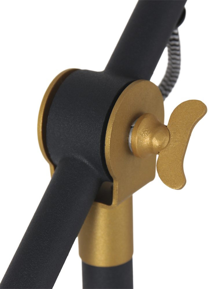 Die Drahtstehleuchte von Anne Light & Home ist ein Design-Highlight. Viele goldene Details vereint die Leuchte, die individuell verstellbar ist. Das Design-Thema der Farben Schwarz und Gold nimmt dieses Design komplett in sich auf. Die Leuchte kann sehr gut als Leseleuchte im Wohnzimmer genutzt werden. Sie lässt sich problemlos in alle Einrichtungsstile integrieren und wird immer ein Blickpunkt im Raum sein.