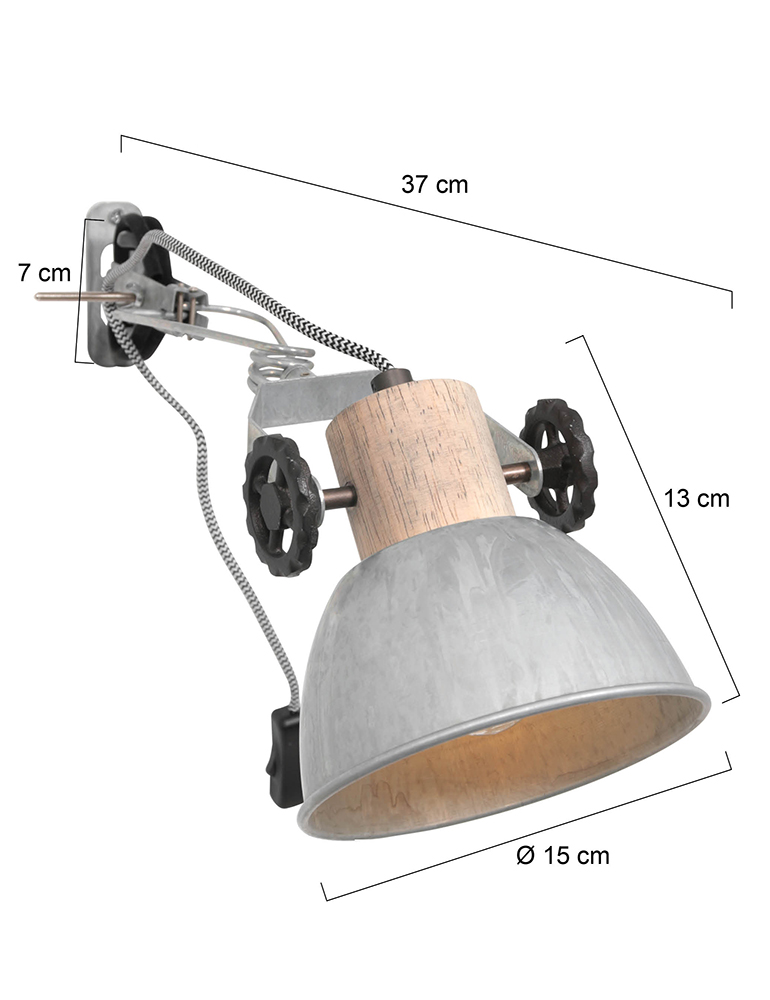 Eine Radklemme braucht niemand, aber eine Klemmlampe schon! Sehr praktisch, du klemmt die Lampe dort, wo du Licht benötigst. Diese Lampe kannst du mit den robusten Zahnrädern in alle Richtungen ausrichten, um die beste Lichtausbeute zu erzielen. Alle Metallteile haben eine Nickeloptik, der Fassungsring ist aus Holz. Das wird dein Lieblingsstück in deinem Zuhause!