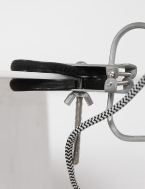 Eine Radklemme braucht niemand, aber eine Klemmlampe schon! Sehr praktisch, du klemmt die Lampe dort, wo du Licht benötigst. Diese Lampe kannst du mit den robusten Zahnrädern in alle Richtungen ausrichten, um die beste Lichtausbeute zu erzielen. Alle Metallteile haben eine Nickeloptik, der Fassungsring ist aus Holz. Das wird dein Lieblingsstück in deinem Zuhause!