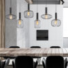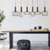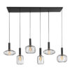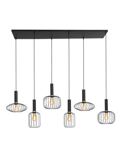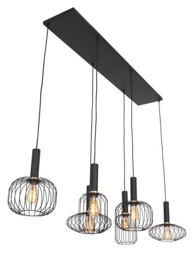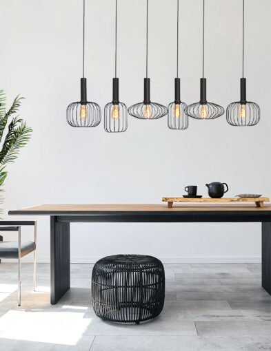 Suchst du nach etwas Besonderem für über dem Esstisch? Mit der verspielten sechsflammigen Draht-Esstischlampe Mexlite Aureole schwarz bist du genau richtig. Diese Hängelampe besteht aus 6 kleineren Lampen, die sich in ihrer Form unterscheiden. Runde, schmale und ovale Formen aus Drahtstahl werden kombiniert. Alle Lampen haben eine offene Struktur und Messingdetails. Diese goldenen Details sorgen für ein äußerst elegantes Gesamtbild. Mit dieser Hängelampe hast du ein Meisterwerk über deinem Tisch hängen!