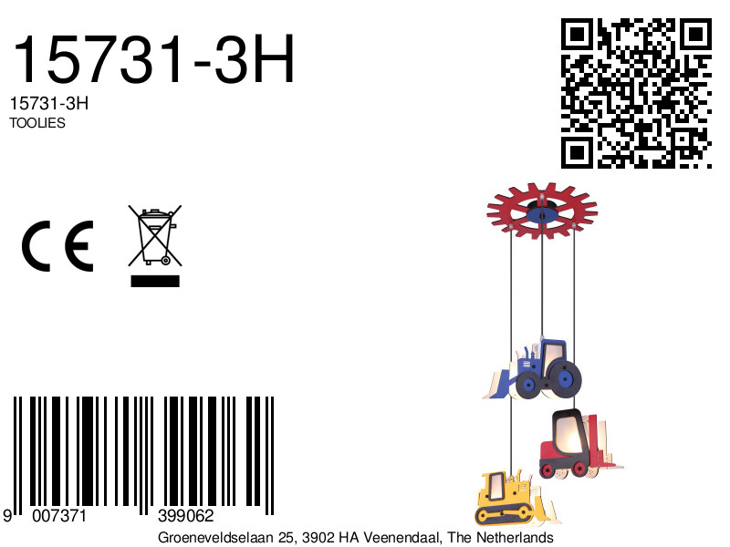 Die Toolies Pendelleuchte ist ein auffälliges Highlight für jedes Kinderzimmer und bringt die Herzen der jungen Bauerbeiter-Fans schnell in Bewegung. Mit drei separaten Kabeln, die nach unten hängen, die jeweils mit einem einzigartigen Spielzeug verziert sind – einer fröhlichen gelben Schiebewurm, einem knallroten Gabelstapler und einem coolen blauen Traktor – verleihen Sie dem Raum eine verspielte und lebendige Atmosphäre. Mit einer Höhe von 1,2 Metern und einem Durchmesser von 55 Zentimetern ist diese Leuchte die ideale Wahl für eine kinderfreundliche Einrichtung.