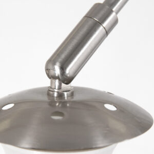 Die warme Ausstrahlung des ockergelben Schirms sorgt für einen stimmungsvollen Kontrast zum robusten silberfarbenen Rahmen. Dank des verstellbaren Bogens kannst du das Licht einfach anpassen, perfekt für stimmungsvolle Beleuchtung oder funktionale Nutzung in deinem Wohnraum.