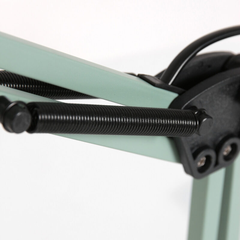 Eine praktische Schreibtischlampe, die in mehreren Stellungen einstellbar ist, ist unverzichtbar im Kinderzimmer. Mit dieser schönen, mintgrünen Version von Mexlite bringst du frischen Wind in den Raum, egal ob die Lampe brennt oder nicht. Die Scharniere und die Feder der Lampe sind schwarz, was der Lampe einen verspielten Charakter verleiht. Die Lampe kann auf eine Gesamthöhe von fast fünfundfünfzig Zentimetern eingestellt werden.