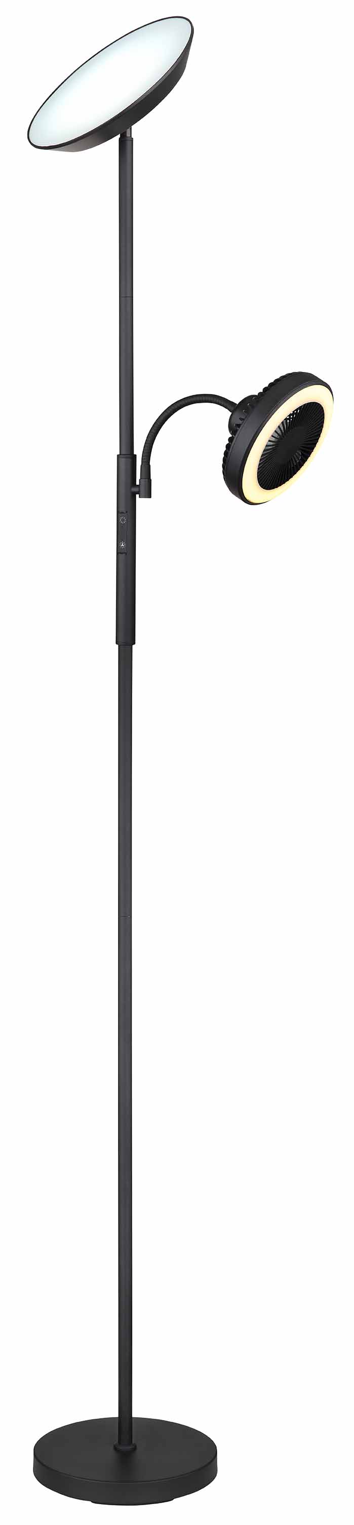 Erleben Sie die ultimativen Verschmelzung von Funktionalität und Stil mit dem DAVYD runden Uplight. Diese clever gestaltete Lampe ist in mattem Schwarzmetall und Chrom ausgeführt, mit Kunststoffakzenten in mattem Schwarz und Opal, was einen stilvollen modernen Touch verleiht. Der einzigartige verstellbare Scheinwerfer bietet persönliche Beleuchtungsflexibilität, während der integrierte Ventilator für eine angenehme Luftzirkulation in kleinen bis mittelgroßen Räumen sorgt. Dank des benutzerfreundlichen Touch-Dimmers ist das Anpassen der Lichtintensität ein Kinderspiel, bei dem sowohl die gewünschte Helligkeit als auch die Farbe angepasst werden können. Mit dem DAVYD runden Uplight genießen Sie maßgeschneiderte Beleuchtung und subtile Luftbewegung in einem eleganten Paket.