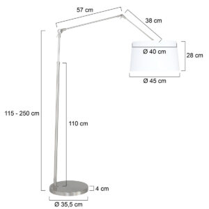 Suchst du nach einer Bogenlampe, die anders ist als gewöhnlich? Dann lerne Gramineus kennen! Gramineus ist keine Standard-Bogenlampe. In dem Bogen sind nämlich zwei biegbare Punkte integriert, mit denen der Arm verstellbar ist. Diese Punkte machen die Lampe nicht nur besonders, sondern auch praktisch. Da die Lampe leicht verstellbar ist, scheint das Licht immer an den gewünschten Ort. Die gebürstete Stahlfarbe und der weiße Schirm sorgen dafür, dass Gramineus modern aussieht und in nahezu jedes Interieur passt. Das Wohnzimmer, der Esstisch und das Büro werden gerne von Gramineus beleuchtet.