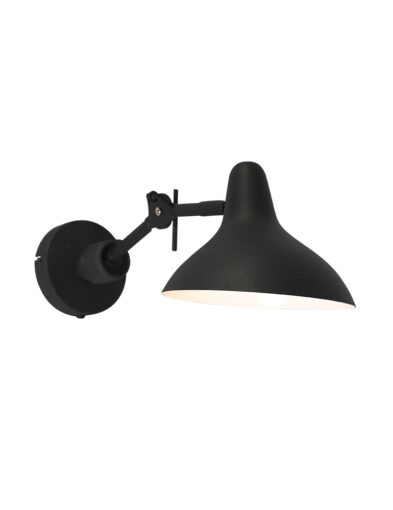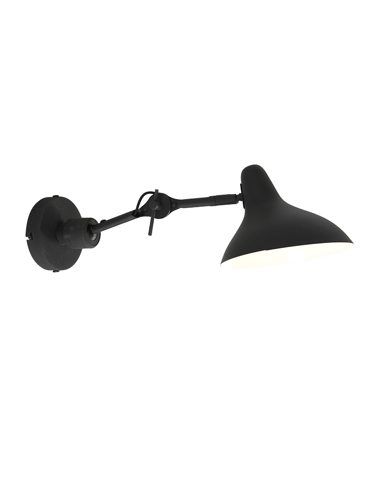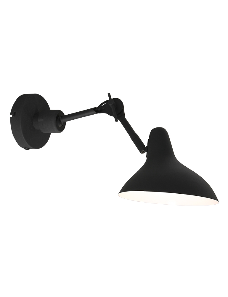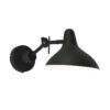 Eine verstellbare Wandleuchte aus schwarzem Metall im Retro-Stil mit einem skandinavischen Augenzwinkern. Funktional und industriell, stimmungsvoll und zeitlos. Der Augenzwinkern ist der kapselförmige Schirm mit weißer Innenseite, Kasket auf Dänisch. Der ausziehbare und neigbare Schwenkarm wird mit einem eleganten Stäbchen bedient. Platzsparend über Ihrem Schreibtisch oder Nachttisch und ein Allround-Stimmungslicht mit extern dimmbarer Lichtquelle.