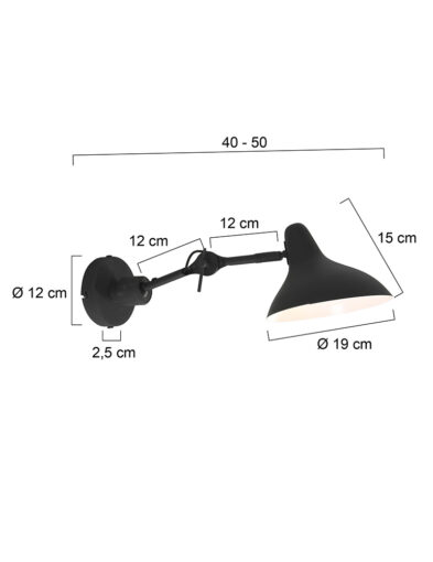 Die schwarze Wandleuchte aus der Kasket-Serie kombiniert Flexibilität mit Stil. Ausgestattet mit einer E27-Fassung, geeignet für Lichtquellen bis zu 40 Watt. Der Arm ist bis zu einer maximalen Reichweite von 50 cm verstellbar und die Wandplatte hat einen Durchmesser von 12 cm. Die Lampe kann einfach mit einem Kabelschalter bedient werden und ist mit einer geeigneten Lichtquelle dimmbar.