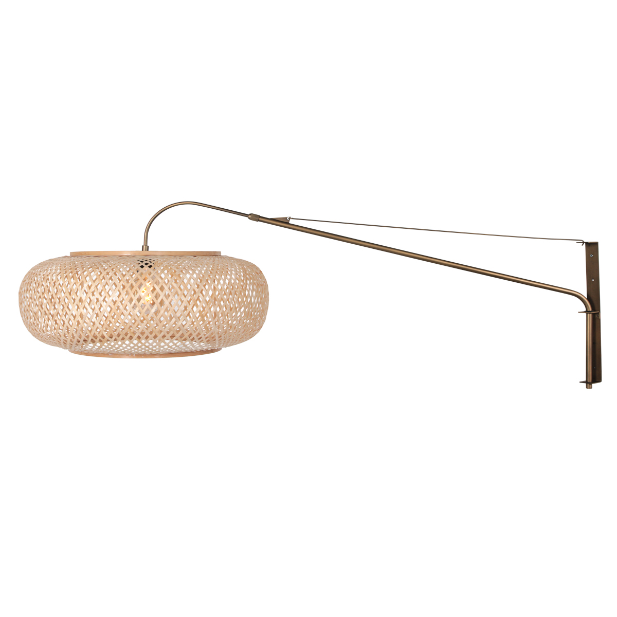 Die Maze Natural 4744BR ist eine auffällige Wandlampe mit einem verstellbaren Arm und einem natürlichen Bambusschirm. Die Kombination aus bronzefarbenem Metall und Bambus sorgt für eine warme und gemütliche Ausstrahlung.