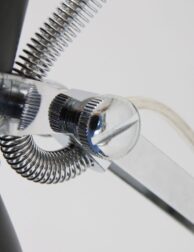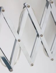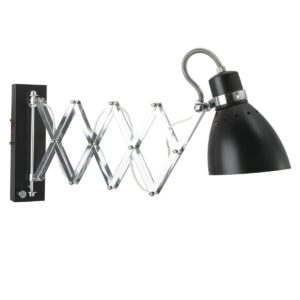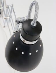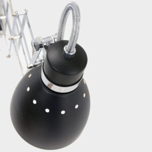 Was für ein Schmuckstück, dieser “Spring” von Steinhauer! Erinnerst du dich noch an die Barbier-Spiegel von früher? Mit so einem Zickzack-Scherenarm? Dann erkennst du sicher diese verstellbare Wandspot. An einer rechteckigen schwarzen Wandplatte sitzt der Scherenarm, der einen schwarzen Schirm hält. Der Scherenarm und die Akzente sind in Chromfarbe. Diese Wandspot sieht fantastisch in modernen und Retro-Interieurs aus. Dein Lesebuch oder dein Schreibtisch wurden noch nie so schön beleuchtet.