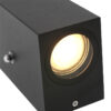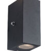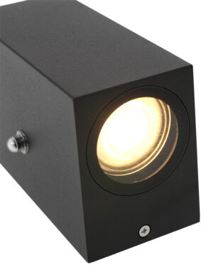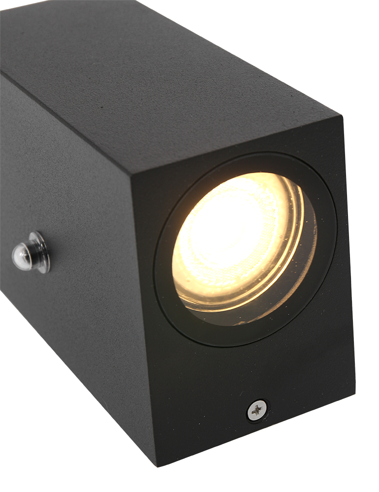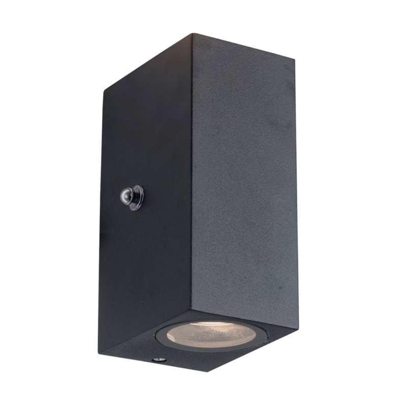 Die Poro Außenlampe ist mit einem Dämmerungssensor und einer IP54-Klassifizierung ausgestattet, wodurch sie wasser- und staubdicht ist. Die Lampe wird mit zwei GU10 Lichtquellen von 345 Lumen und 2700 Kelvin geliefert. Mit einer kompakten Höhe von 15,5 cm und einer Tiefe von 9 cm bietet diese Wandlampe eine effiziente Beleuchtung für die Fassade oder den Garten.