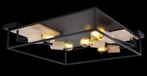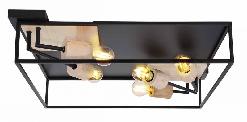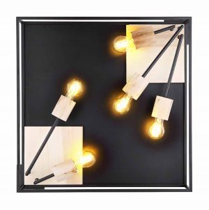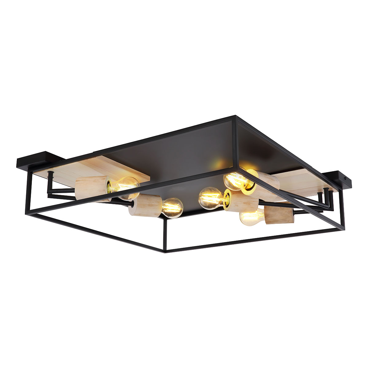 Diese Deckenleuchte (Ø64 cm) fällt durch ihr einzigartiges Design auf. Das Licht kann von allen Seiten strahlen durch den quadratischen schwarzen Metallrahmen. Sie haben die freie Wahl bei den Lampen dank der fünf E27-Fassungen, geeignet für maximal 5×60 Watt. Für zusätzliche Langlebigkeit empfehlen wir LED-Lampen. Diese Lampe überrascht jeden Besitzer mit ihrem besonderen Charme.