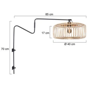 Die Linstrom Wandlampe von Anne Lighting ist eine trendige und praktische Beleuchtungslösung. Dieses schwarze Metallarmatur mit Pulverbeschichtung hat eine Höhe von 70 cm und eine Reichweite von 90 cm, wodurch man gezielte Beleuchtung im Esszimmer, Schlafzimmer oder Wohnzimmer erhält. Der natürliche Bambusschirm von 40 cm ist neigbar und die Lampe selbst ist drehbar für zusätzliche Flexibilität. Mit einem Kabel von 180 cm und Schalter ist die Lampe einfach zu bedienen. Eine stilvolle Wandlampe, die Platz spart. Inklusive 2 Jahren Herstellergarantie.