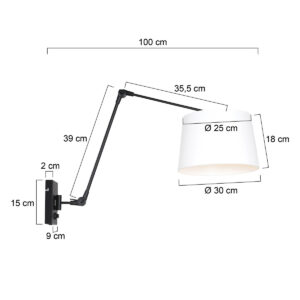 Eine robuste, aber elegante Wandlampe, die sich mühelos an Ihr Interieur anpasst. Der verstellbare Arm gibt Ihnen die Freiheit, das Licht genau dorthin zu richten, wo Sie es benötigen, während die Kombination aus Schwarz und Weiß für ein zeitloses Erscheinungsbild sorgt.