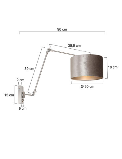 Diese stilvolle Wandleuchte kombiniert zeitlose Eleganz mit einer praktischen Funktion. Der silberne Samt-Schirm sorgt für einen luxuriösen Look, während der verstellbare Arm Ihnen die Freiheit gibt, das Licht genau richtig zu positionieren. Ideal als stimmungsvolle Akzentbeleuchtung oder als subtile Leselampe neben Ihrem Lieblingsstuhl.