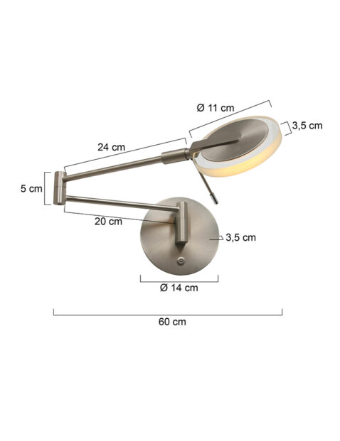 Diese stahlfarbene Wandlampe aus der Turound-Serie ist mit einem klaren Glasreflektor und einem effizienten LED-Modul von 10 Watt und 1000 Lumen ausgestattet. Die Farbtemperatur ist zwischen 2200 und 4000 Kelvin einstellbar, sodass du die Lichtstimmung nach Belieben anpassen kannst. Dank des integrierten Push-Dimmers auf der Wandplatte kannst du die Lampe ganz einfach bedienen: Kurzes Drücken schaltet die Lampe ein oder aus, während längeres Drücken die Helligkeit regelt. Mit einer maximalen Reichweite von 60 cm ist diese Lampe perfekt als funktionale und stimmungsvolle Beleuchtung einsetzbar.