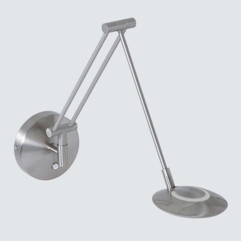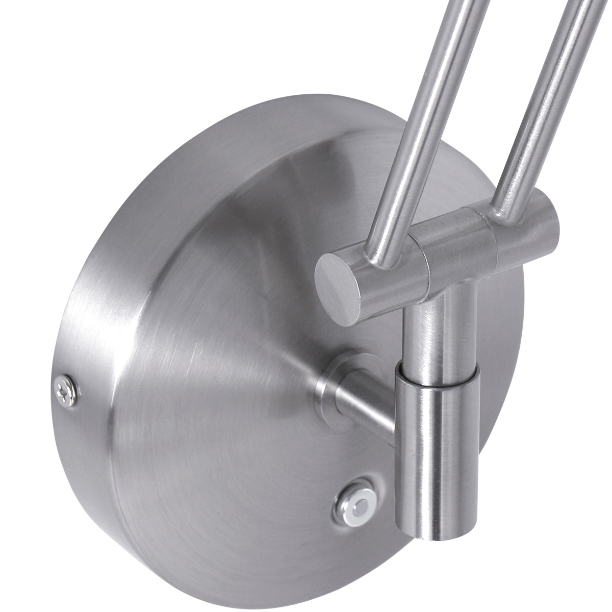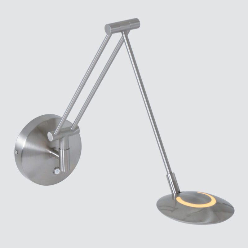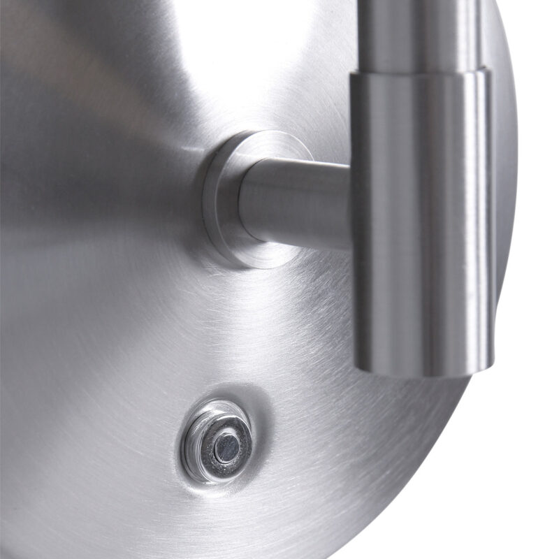 Die stahlfarbene Wandlampe aus der Zodiac-Serie ist mit einem austauschbaren 6 Watt LED-Modul (2700 Kelvin, 600 Lumen) ausgestattet. Die Lampe ist einfach über den Druckdimmer auf der Wandplatte dimmbar. Der Arm ist biegsam und drehbar für optimale Flexibilität. Der Ausleger ist bis zu 53 cm einstellbar und die Wandplatte hat einen Durchmesser von 12 cm. Das Kabel ist 200 cm lang, was eine einfache Installation ermöglicht.