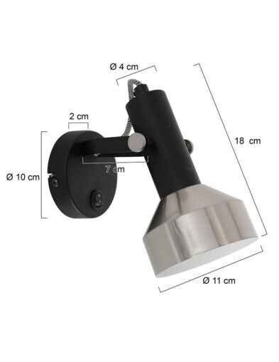 Eine Wandleuchte mit einem Schalter ist eine gute Lösung, wenn Sie nach einer Leselampe für das Bett suchen. Sie sieht aber auch schön als Spot über einem Schränkchen im Flur oder im Badezimmer beim Badmöbel aus. Die Farbkombination aus Schwarz und gebürstetem Stahl verleiht der Lampe ein modernes Aussehen. Dadurch passt die Lampe auch hervorragend ins Kinderzimmer.