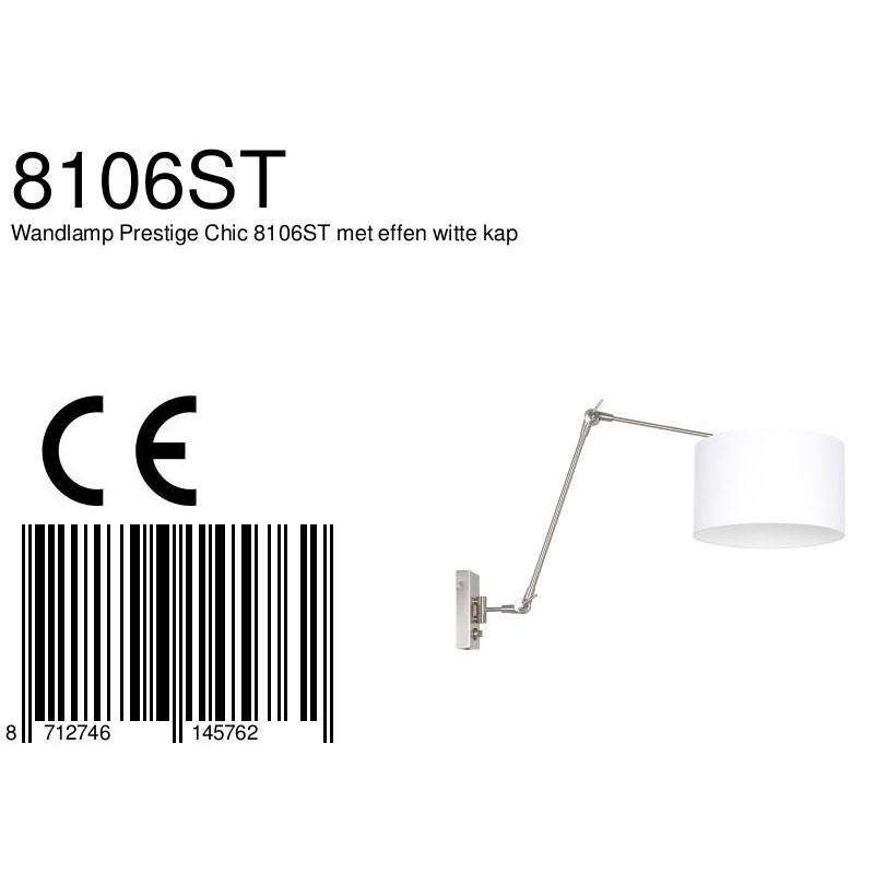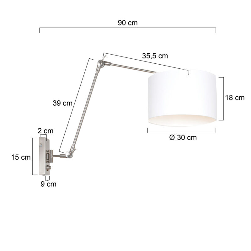 Wenn Sie eine Lampe suchen, über die Sie beim Staubsaugen nicht stolpern, ist eine Wandleuchte ideal für Sie. Die „Prestige“ ist eine schicke Wandleuchte mit einem schwenkbaren Arm. Der Rahmen ist stahlfarben und der Schirm ist mit weißem Stoff bezogen, was gut zu einem modernen Interieur passt. Kombinieren Sie sie mit anderen Lampen aus derselben Serie von Steinhauer für einen überraschenden Effekt.