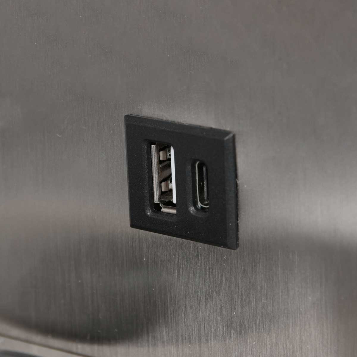 - Mit einem USB- und USB-C-Anschluss ausgestattet.