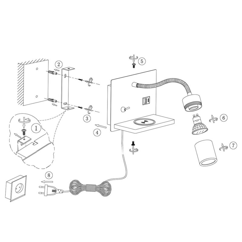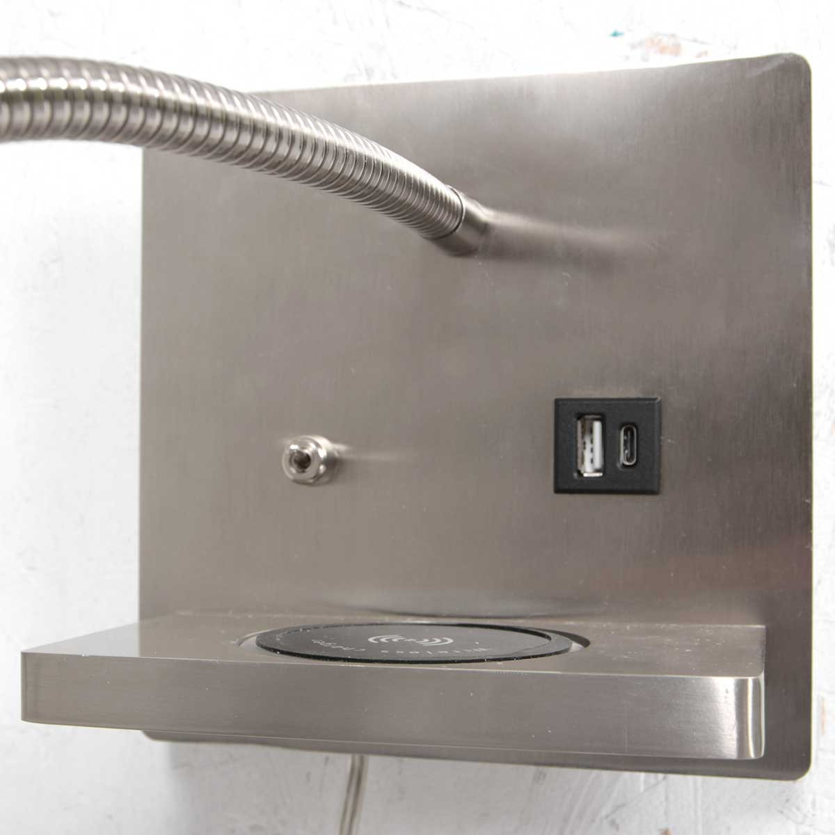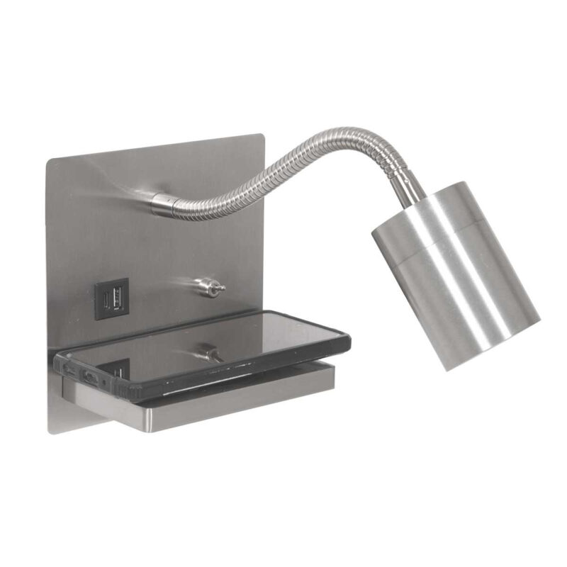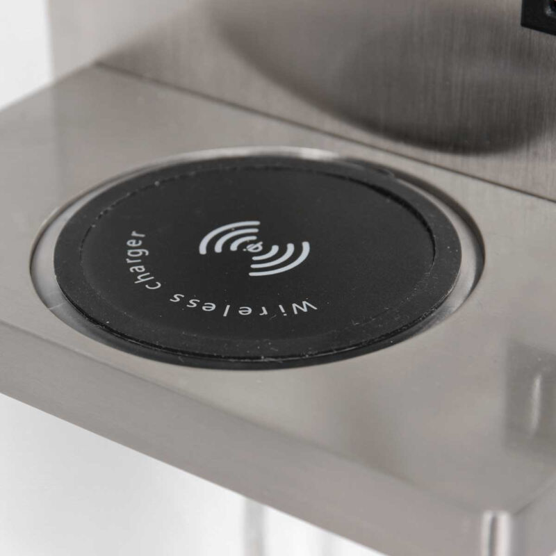 Die stahlfarbene Wandleuchte aus der Upround-Serie verfügt über ein integriertes kabelloses Telefonladegerät sowie USB-A- und USB-C-Anschlüsse, wodurch sie besonders praktisch ist. Die Lampe wird mit einer GU10 Lichtquelle mit Dim-to-Warm-Funktion geliefert, mit der Sie die Lichtfarbe zwischen 2200K und 2700K einstellen können, um eine warme oder helle Atmosphäre zu schaffen.