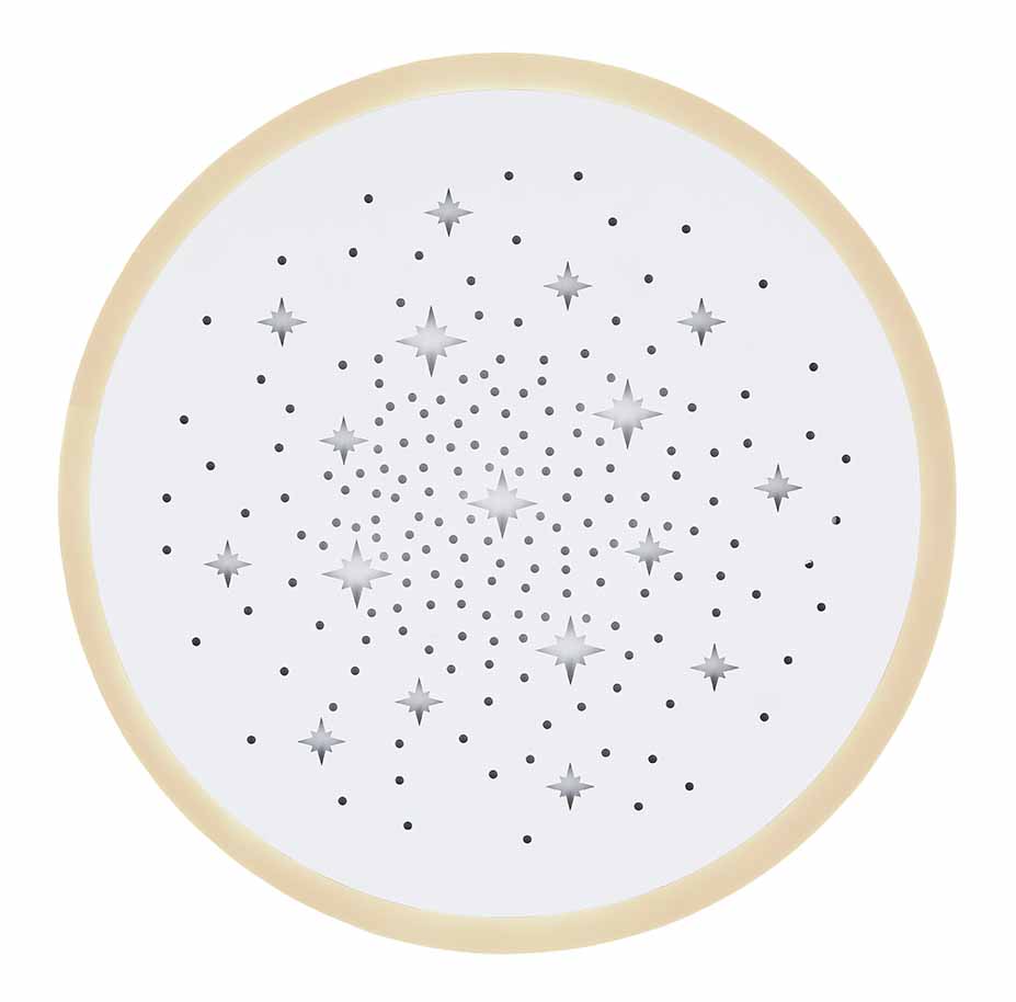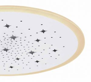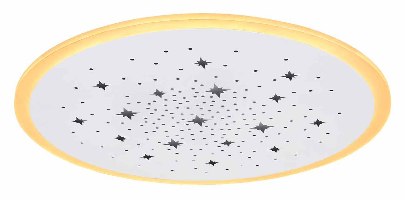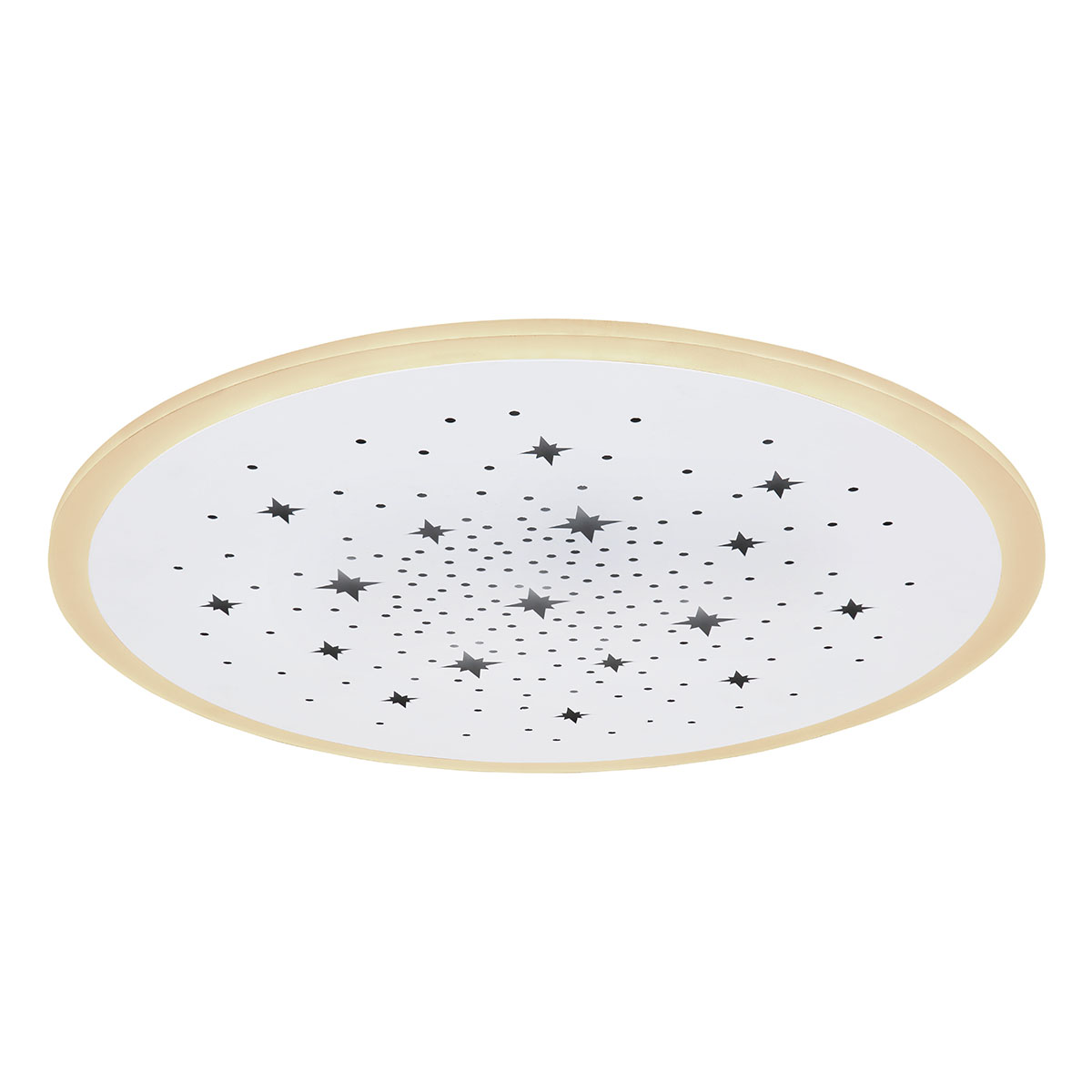Bringen Sie ein erfrischendes Element in Ihren Wohnraum mit unserer runden Murphy Deckenleuchte. Diese einzigartige Lichtquelle zeichnet sich durch eine weiße Metallplatte aus, die von einem Kunststoffring umschlossen und mit Stern- und kreisförmigen Perforationen verziert ist. Dank der mitgelieferten LED-Lampen bietet sie eine beeindruckende Lichtausbeute von 1300 Lumen, die über die Fernbedienung regulierbar ist. Das Farbspektrum reicht von einem angenehmen warmen Weiß von 2700 Kelvin bis zu einem kühlenden Weiß von 6500 Kelvin, unterstützt durch eine praktische Nachttlampenfunktion. Diese Leuchte fügt sich nahtlos in die stilvolle Murphy-Serie für ein zusammenhängendes Design in Ihrem Zuhause ein.