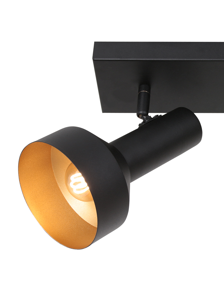 Mit Deckenstrahlern schaffen Sie ausreichend Licht im Raum, ohne dass die Lampe an einem Kabel im Raum hängt. Die schwarzen Deckenstrahler mit einem goldenen Innenleben spenden schönes Licht. Wählen Sie einen Lichtstrahl, der bei beiden Strahlern in dieselbe Richtung zeigt, oder drehen Sie die Strahler unabhängig voneinander. Diese Strahler passen in ein modernes Interieur.